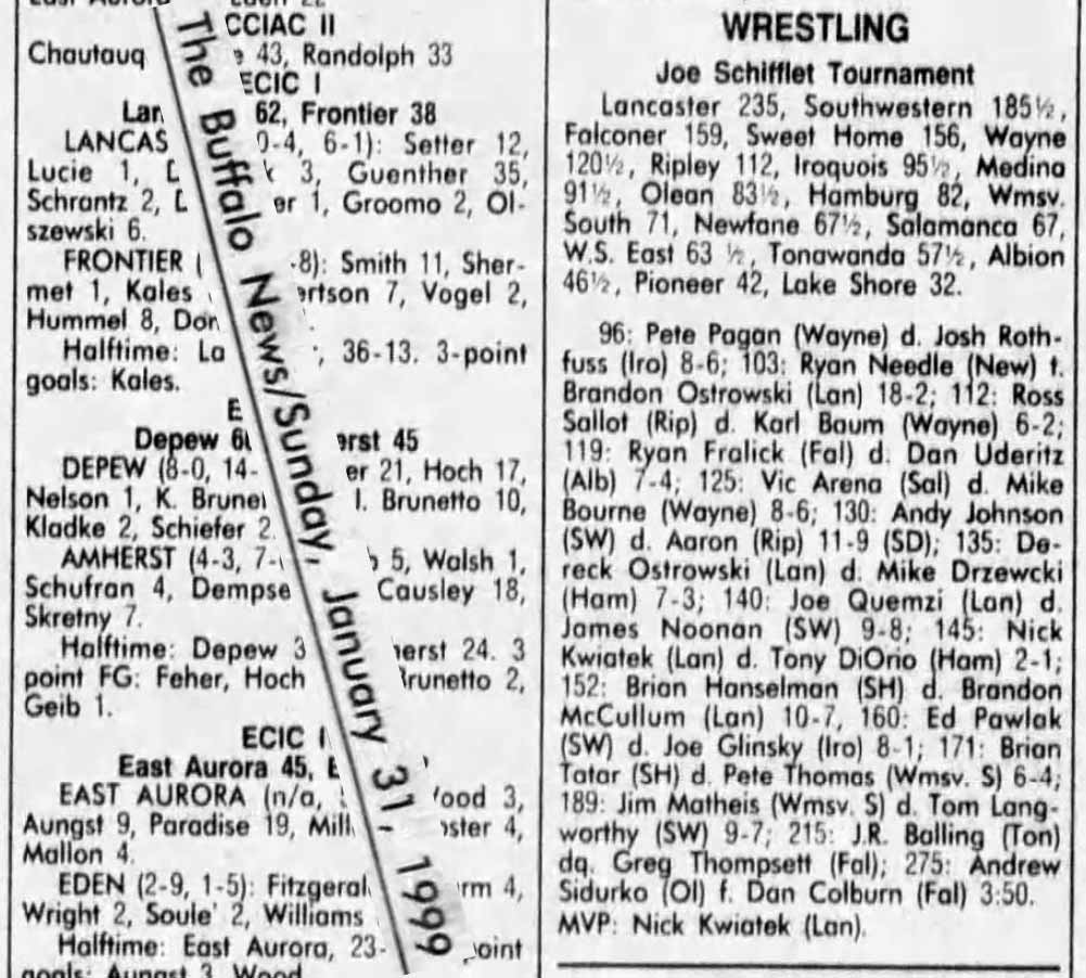 Ed Pawlak (Southwestern [NY]) > Joe Glinsky (Iroquois [NY]),