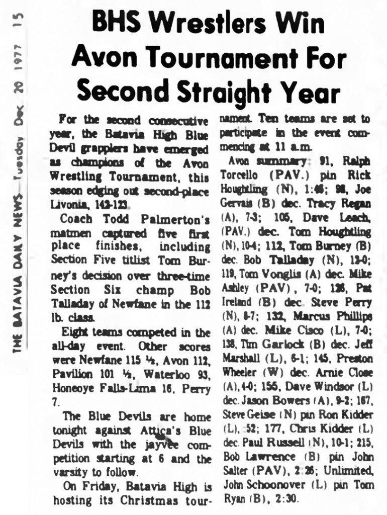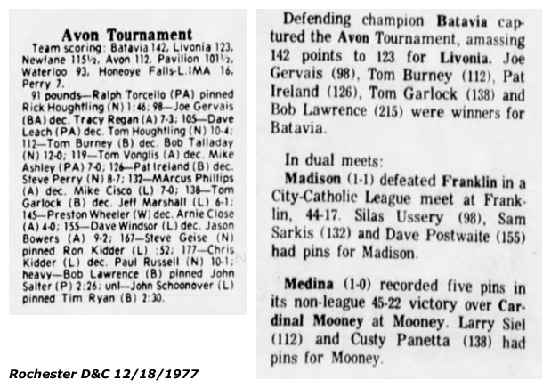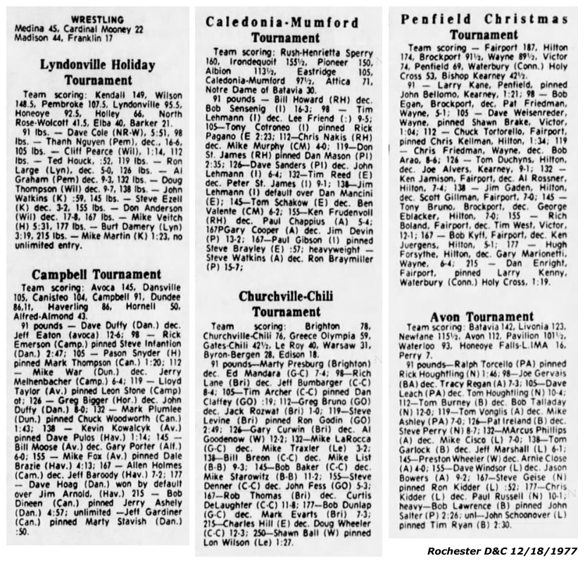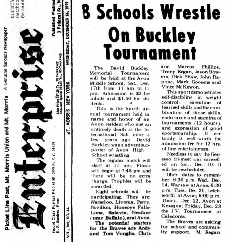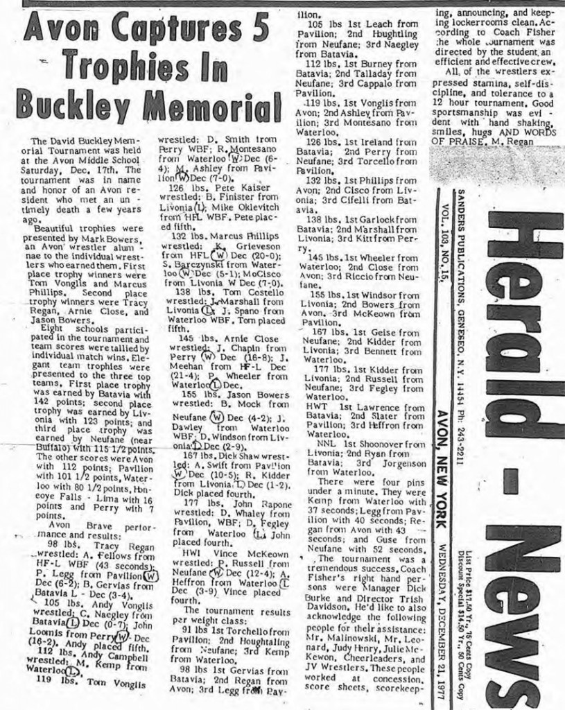 EIGHT SCHOOLS PARTICIPATED in the David Buckley Christmas Tournament at Avon Central School Dec. 17. SOURCE: Avon Herald-News, December 21, 1977.