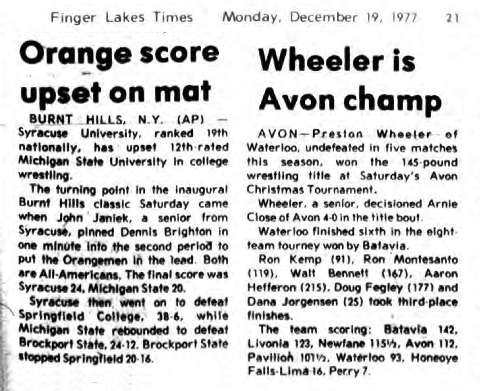 Preston Wheeler (Waterloo [NY]) > Arnie Close (Avon [NY]),