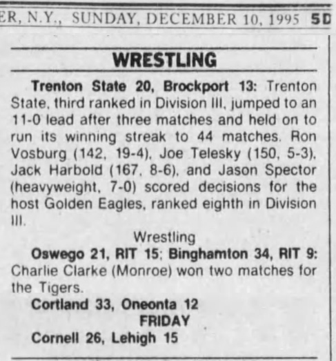 Vinnie Santaniello (The College of New Jersey (Trenton State) [NJ]) > Bill Schempp (SUNY Brockport [NY]),