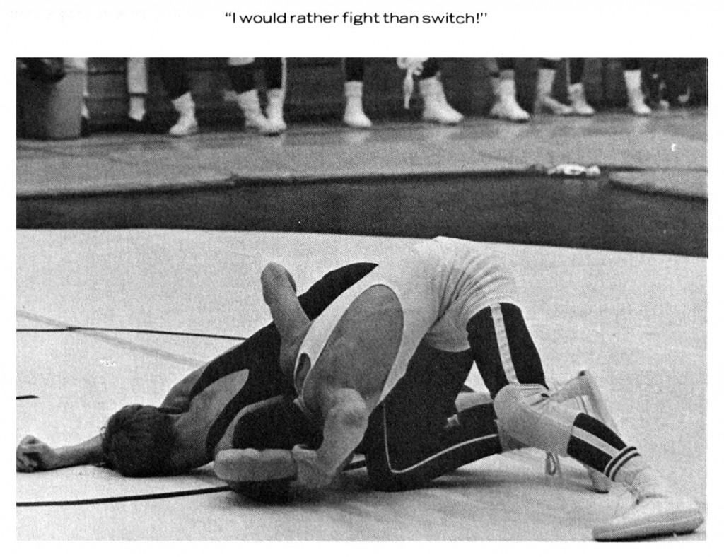 WRESTLING. Rich Frey, Jack MacDuff, and Jamie Aparo were the leaders on this year's wrestling team. The season's highlights were the defeats of Penfield 28-22, Webster 24-23, and the County Tournament in February. KNEELING: L. DePuy, D. LeClair, J. Mackenzie, R. Frey, S. Profetta, S. Becker, M. Hickey, C. Murray, M. Parsons, D. Bair. STANDING: S. Bingham, Mr. Concilla, H. Raught, Coach Logan, J. Aparo, J. Murphy, G. Harvey, J. MacDuff, J. Sozio, D. Doser, B. Bayer, L. Gordon, R. Connors, D. Snider, S. Legan, R. Sayer (manager). SOURCE: 1967 Hourglass.