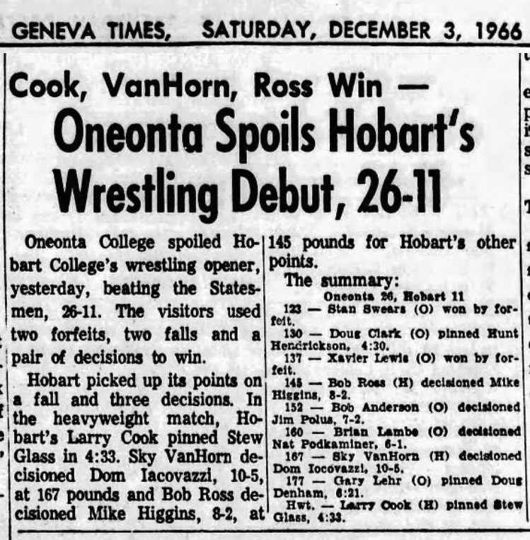 Cook, VanHorn, Ross Win. SOURCE: The Geneva Times, December 3, 1966.