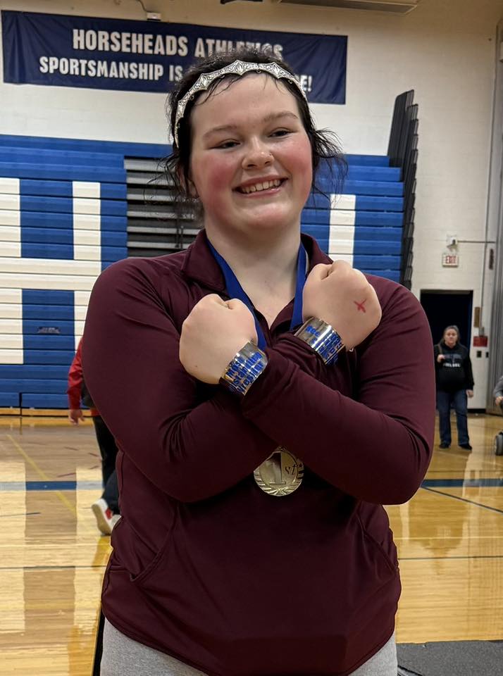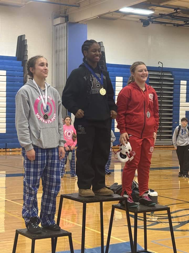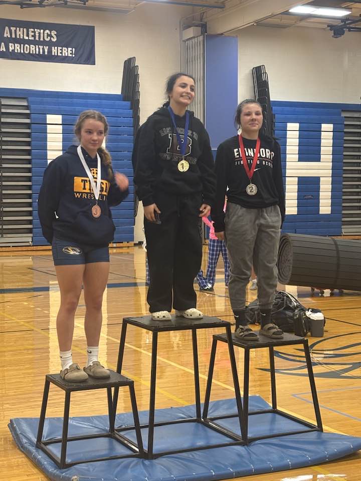Senior Emma Vanderhoof won the 132-pound bracket and was named the Outstanding Wrestler here Saturday at the Bea Stephens Girls Wrestling Scramble. Photo shared by Valley Sports Report.
