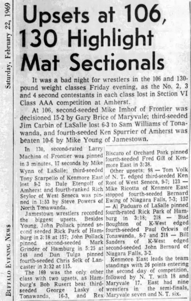 ...Hunt decisioned Frontier's George Ruper, 15-10. SOURCE: Buffalo (NY) Courier-Express, Monday, February 24, 1968.