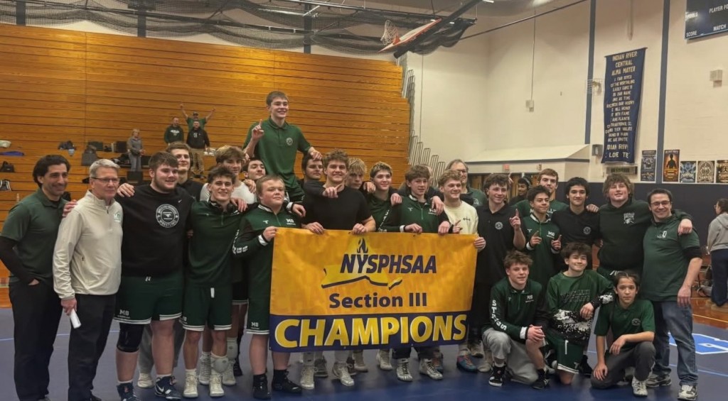WRESTLING. Marcellus/Onondaga Wrestling captured its first-ever Section 3 Division 2 Dual Meet championship title on January 19. Photo shared by Onondaga CSD.